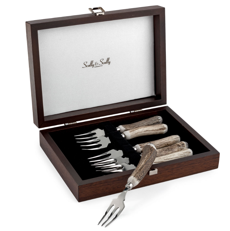 Polished flatware and sparkling crystal are not merely functional; they add a layer of refinement. A set of hand-cut Waterford Lismore Wine Glasses catches the light beautifully, while English stag-horn handled flatware introduces texture and character to each place setting.