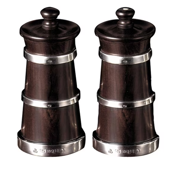 Sterling Silver-Banded Ebony Salt & Pepper Mills