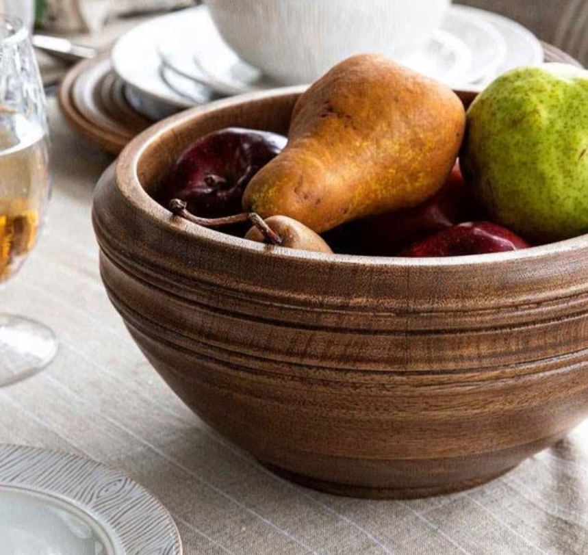 If serving a salad, the Juliska Bilbao Wood Salad Bowl and Server adds a warm touch without overshadowing the entrée to come.